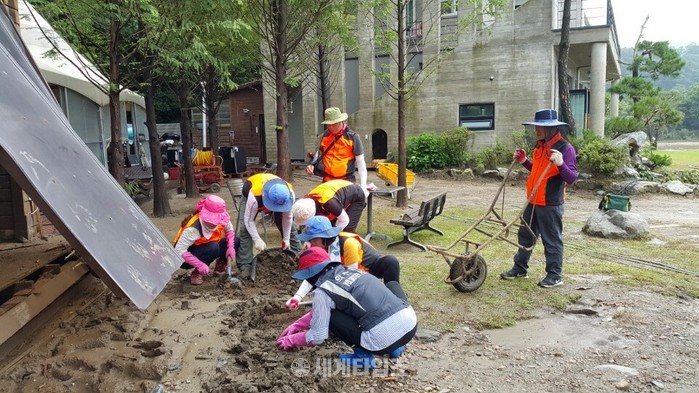[대전=세계타임즈 이장성 기자] 대전의용소방대(연합회장 김선태)는 25일 충북 청주시 미원면 옥화리에서 대원 50여명이 참여한 가운데 충북의용소방대연합회와 함께 중장비 등을 이용해 수해복구 활동을 펼쳤다.