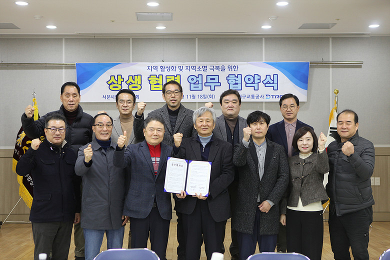 - 지역 활성화 및 지역소멸 극복을 위한 상생 협약(MOU) 체결 - [세계타임즈=대구 한윤석 기자] 대구교통공사는 지역경제 활성화 및 지역소멸 극복을 위한 협력체계를 구축하기 위해 지난 11월 6일(목) 대구서문시장연합회와, 18일(화)에는 서문시장상가연합회와 상생협력 업무협약(MOU)을 체결했다.