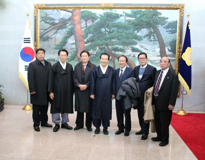 | ▲ 신년하례행사에 참석한 청년들과 기념촬영중인 정세균 의장 © 세계타임즈 |