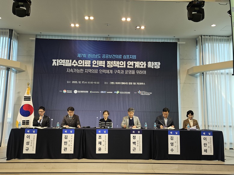 이도완 경남도 보건의료국장은 “이날 심포지엄에서 제기된 제언과 현장 요구를 바탕으로 지역 특성에 맞는 맞춤형 지원책을 보완·적용해 나가겠다”면서, “지역 공공보건의료와 필수의료 인력체계의 지속가능성을 위해 관계 기관과의 협력을 강화하겠다”라고 밝혔다.