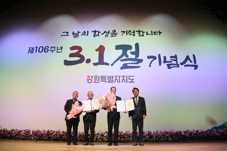 [강원도 세계타임즈=김민석 기자] 강원특별자치도(도지사 김진태, 이하 ‘도’)가 3월 1일 오전 10시, 강원대학교 백령아트센터에서 ‘제106주년 3.1절 기념식’을 개최했다고 밝혔다.