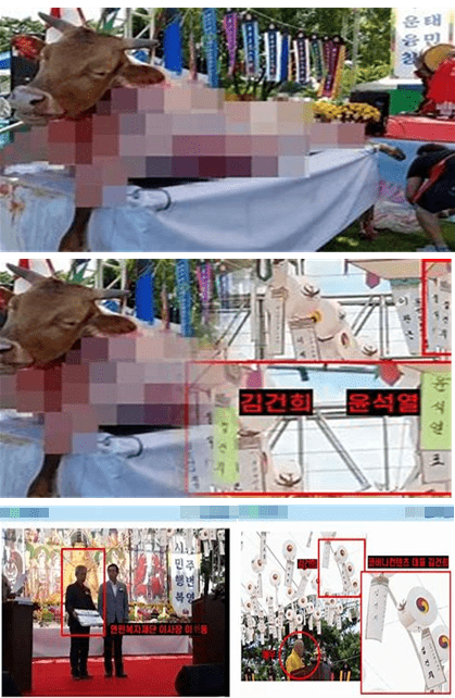 윤석렬 후보와 그 배우자 김건희씨는 소의 가죽을 벗기는 잔인한 굿 판에 자신들의 이름이 적힌 등을 달고 검찰총장이 되기를 기원했었고, 대통령 후보가 되기까지를 기원한 것이라면 상상만 해도 그 결과는 무섭다.