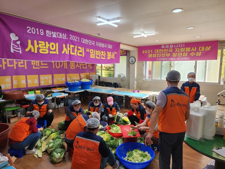 [대전 세계타임즈=이채봉 기자] 지방자치단체의 보조금 지원 없이 8년째 다양한 봉사를 실천하고 있는 사랑의 사다리 밴드(리더 이정제) 봉사단체는 3일 맛있는 밑반찬을 만들어서 대덕구 소외계층 80가정에 따뜻한 사랑을 실천하였다.