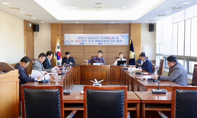 [천안시 세계타임즈=이현진 기자] 천안시의회는 12월5일(금) 열린 ‘도심하천 지역명소화 및 친수공간 조성 특별위원회’(위원장 이병하) 제5차 회의에서 지난 9개월간의 조사·연구 활동을 종합한 「특별위원회 활동결과보고서」를 최종 채택하며 활동을 마무리했다.
