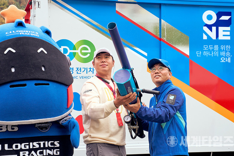 레이스를 마친 뒤 택배차량에서는 CJ대한통운 강신호 대표가 깜짝 등장했다. 강 대표는 슬리퍼·안대·보조배터리·비치타올·쿨링백으로 구성된 CJ대한통운 오네 굿즈 5종 세트를 개틀링 건으로 발사, 이를 받은 관객들에게 즐거움을 선사했다. 강 대표는 “슈퍼레이스 최종전을 찾아주신 관객분들께 감사드리며, 앞으로 더 많은 즐길거리와 볼거리를 제공해 모터스포츠가 더욱 대중화될 수 있도록 노력하겠다”면서 “CJ대한통운 오네(O-NE) 역시 여러분의 편리하고 즐거운 일상을 함께 만드는 친근한 브랜드로 다가가겠다”고 말했다.