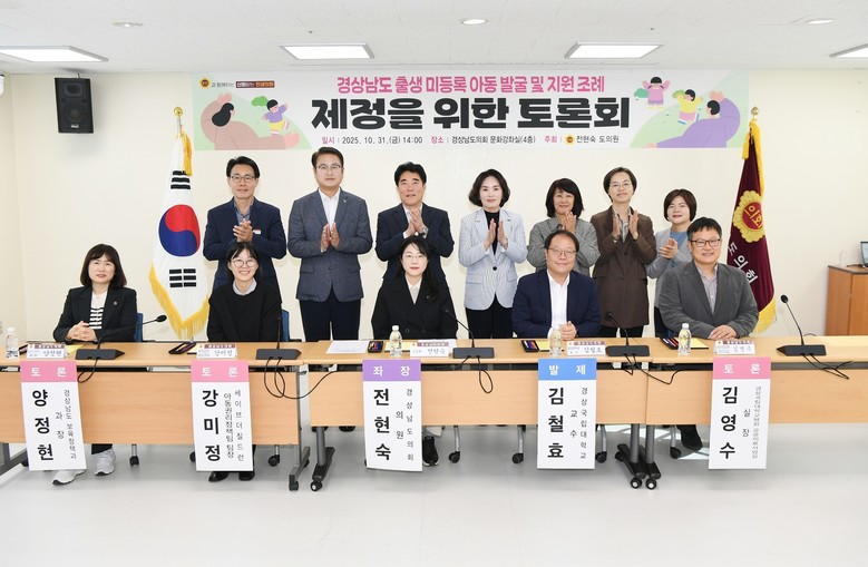 [경남 세계타임즈=최성룡 기자] 경상남도의회 전현숙 의원(국민의힘, 교육위원회)은 31일 도의회 문화강좌실에서 「경상남도 출생 미등록 아동 발굴 및 지원 조례」 제정을 위한 토론회를 개최했다.
