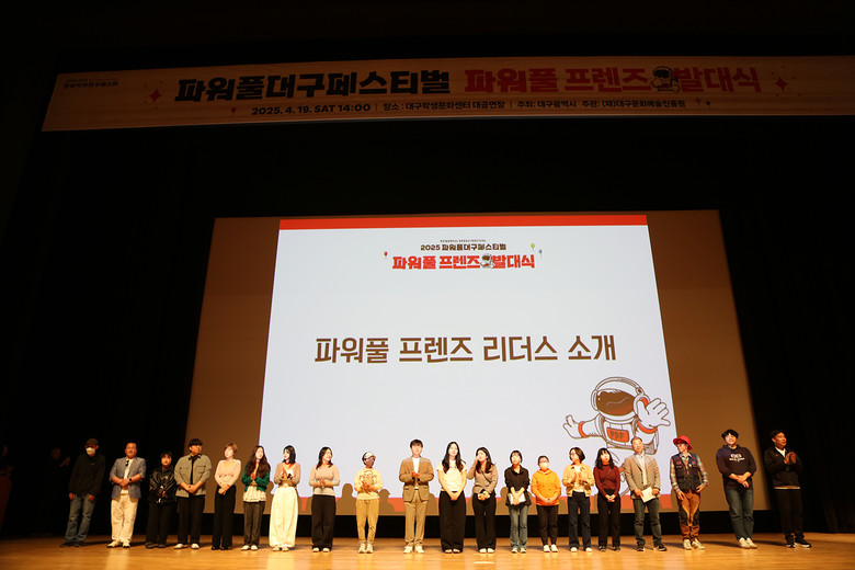 ▸ 자원봉사자 총 지원자 790명 중, 21명 리더스 선발하여 체계적인 운영 아래 시민참여형 축제로 진행 [세계타임즈=대구 한윤석 기자] (재)대구문화예술진흥원(원장 박순태, 이하 ‘문예진흥원’)은 4월 19일(토), 대구학생문화센터 대공연장에서 2025 파워풀대구페스티벌 자원봉사자(파워풀 프렌즈) 발대식을 성황리에 개최했다.
