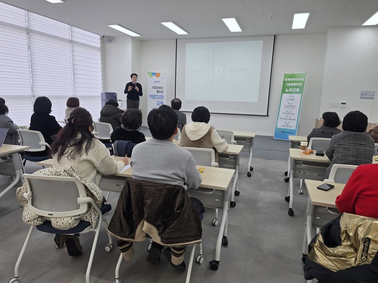 이번 교육은 사회서비스 종사자 역량 강화 교육의 일환으로, 2월 4일(수) 오후 대면 집합교육으로 진행됐다. 강의는 노무법인 결정의 원유봉 대표 공인노무사가 맡아 아동·청소년 그룹홈 운영에 필요한 인사·노무 실무 중심으로 교육을 진행했다.