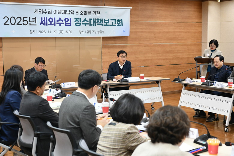 보고회는 영통구청장 주재로 대민협력관을 비롯해 영통구 12개 부서 과장이 참석하여 2025년 세외수입 징수 현황 분석 및 부서별 체납 현황을 점검하고 효율적인 징수대책을 논의하였다.