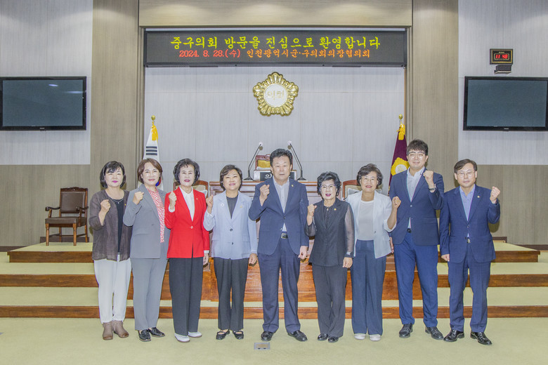 김정헌 중구청장은 인사를 통해 “구의원과 시의원을 경험한 사람으로서 의장님들의 역할이 얼마나 중요한지, 노고가 얼마나 깊으신지 잘 알고 있다”라며, “앞으로도 각 군·구와 인천시 공동의 발전에 많은 도움을 부탁드린다”라고 이야기하였다.