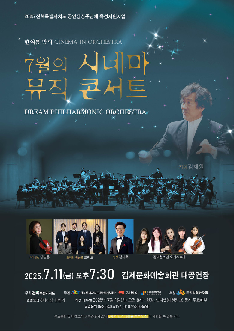 이번 공연에는 특별한 협연으로 바이올리니스트‘양영은’이 깊은 울림을 선사할 예정이며, 지역 인재 발굴과 음악 교육의 일환으로, 김제청소년오케스트라 소속의 바이올린 학생 5명의 특별한 무대를 준비하여 한 여름밤 관객들에게 따뜻한 감동을 선사한다.
