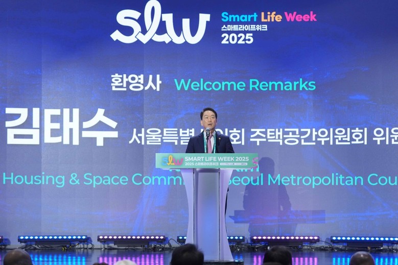 [서울 세계타임즈=이장성 기자] 서울특별시의회 주택공간위원회 김태수 위원장(국민의힘, 성북구 제4선거구)은 9월 30일(화) 오후 1시, 서울 코엑스에서 열린 ‘스마트라이프위크 2025’(이하 ‘SLW 2025’) 개막식 행사에 참석하여, 오세훈 서울시장의 개회사에 이어 성공적인 행사 개최를 위한 환영사를 전했다.