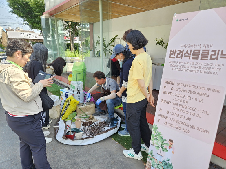 ▸ 반려식물 상태 진단 및 치료 방법, 분갈이 요령까지 [세계타임즈=대구 한윤석 기자] 대구광역시농업기술센터(소장 김수진)는 반려식물의 건강 상태를 진단하고, 치료 및 재배 방법에 대한 궁금증을 해소할 수 있는 ‘하반기 반려식물클리닉’을 오는 9월 2일부터 11월 18일까지 총 11회에 걸쳐 운영한다.