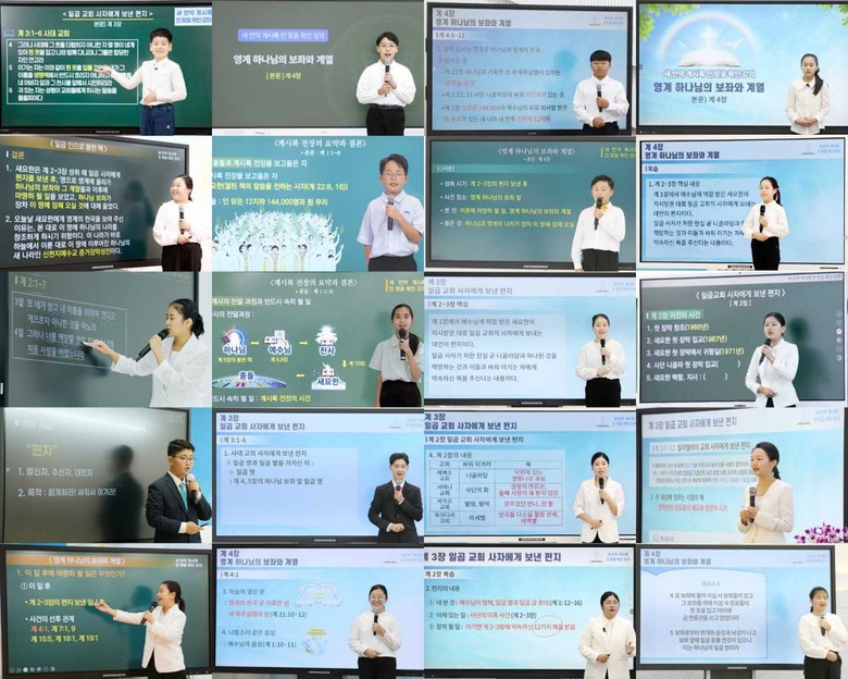 ▲신천지예수교회가 지난달 19일부터 국내외 최초 평신도 수요예배 설교를 진행하는 가운데 사진은 초·중·고교에 재학 중인 신천지예수교회 유년부·학생부 회원들이 요한계시록 설교를 하고 있는 모습.