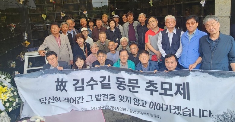 지난 21일 오전 11시 15분부터 1시간 동안 분당추모공원 휴(경기도 광주시 오포리 211-49, 지번주소 : 능평동 6-3) 난초묘역 3-506과 2-601에서 성균관대 민주동문회(이하 성민동)과 (사)성균관대 민주기념사업회(이사장 김태영)이 주관한 고 전경희 선생(1961∼2019.09.13.) 5주기 추모제와 고 김수길 선생(1953∼2019.09.23.) 5주기 추모제가 각각 약 30분 간격으로 잇달아 열렸다.