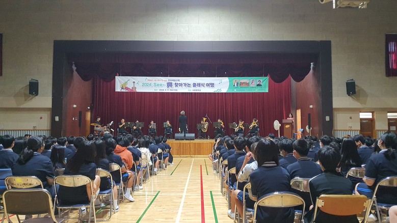 [시흥시 세계타임즈=송민수 기자] 경기 시흥시 시흥중학교(교장 조원택)는 11일 학교 온누리관에서 시흥윈드오케스트라와 함께하는 2024년 시흥 찾아가는 공연 문화예술교육‘See-興 찾아가는 클래식 여행’을 개최하였다.