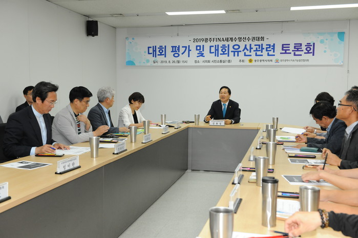 [광주=세계타임즈 손권일 기자] 광주광역시의회 세계수영선수권대회지원특별위원회(위원장 김용집)와 지속가능발전협의회는 지난 26일 시의회 1층 시민소통실에서 2019광주FINA세계수영선수권대회 평가 및 유산 활용 방안 논의를 위한 토론회를 가졌다.