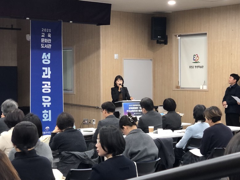 올해 성과공유회는 지난해에 이어 두 번째로 열리는 행사로, 교육문화관(도서관) 직원 90여 명이 참석한 가운데 주요사업 담당자 6명이 △2025 우수도서관 선정 사례 △학교연계 프로그램 △디지털·문해교육 확대 운영 △지역사회 연계 프로그램 등의 우수사례를 발표했다.