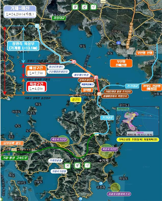 박성준 도 건설교통국장은 “이번 국비 확보는 단순한 SOC사업 착수를 의미하는 것이 아니라, 남해안이 국제적 관광지로 발돋움 하는 여건을 마련하는 것이며, 경남이 글로벌 물류허브로 도약하는 시작이 된다는 의미로써, 조속히 사업 추진이 되도록 노력하겠다.”고 밝혔다.