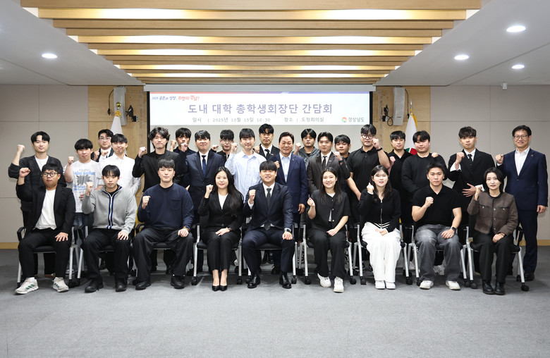 경남도는 15일 오전, 도청 도정회의실에서 ‘도지사-도내 대학 총학생회장단 간담회’를 개최했다. 이번 간담회에는 도내 15개 대학에서 총학생회장단 30여 명이 참석했다.