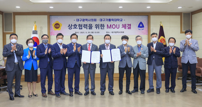 이번 MOU는 지방자치 30년을 갈무리하고 새로운 30년을 준비하기 위한 발전적 고민에서 시작되어 지역 학문의 중심인 대구가톨릭대학과 대구시의회가 지역과 시민을 위한 ‘교육 및 연구역량 증진’에 상호 협력한다는 취지에서 이루어 졌다.