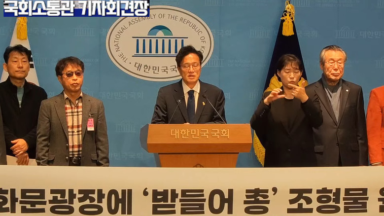 기자회견장에 모인 박주민 의원, 한글문화연대 이건범 대표, 독립유공자 유족회 김삼열 회장 등 시민 대표들은 한목소리로 외쳤다. “광화문광장은 시장의 치적을 쌓는 무대가 아니라 시민의 광장이다.” “세종대왕의 문화 정신 옆에 냉전의 상징물을 세우는 건 모욕이다.” “참전국 기념 시설은 이미 전국에 70곳 넘게 있다. 왜 하필 광화문이냐.” 감사의 마음을 전하는 건 좋지만, 그 장소가 잘못됐다는 것이다.