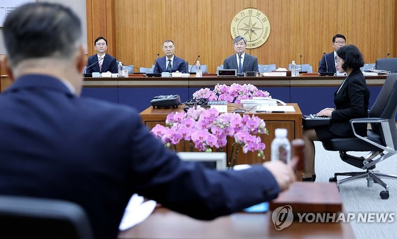 조태용 국정원장, 김남우 국가정보원 기조실장, 황원진 국가정보원 2차장, 윤오준 국가정보원 3차장이 29일 오전 서울 서초구 국정원에서 열린 국회 정보위원회 국정원 국정감사에 참석하고 있다. 2024.10.29 [국회사진기자단]