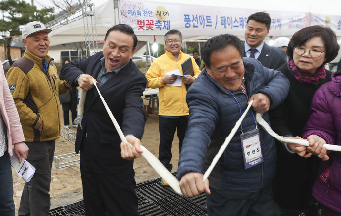 14일 봄비 속에서도 만개한 벚꽃을 보러오기 위해 많은 시민들이 몰린 가운데 '제6회 천안위례벚꽃축제'가 북면 은석초등학교와 북면 일원에서 화려한 막을 올렸다. 또한, 시민들이 떡 돌리기 이벤트에 참여하는 등 즐거운 풍경이 이어졌다.