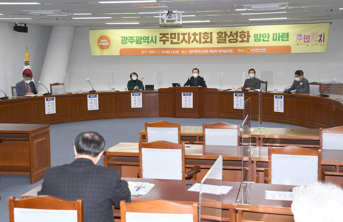 이날 토론회는 송형일 광주광역시의회 의원이 좌장을 맡아, 민현정 광주전남연구원 지역공동체문화연구 센터장, 김일융 광주시 자치행정국장, 박기관 한국지방자치학회장, 김태욱 광주경실련 자치분권위원장, 진귀수 광주시 주민자치협의회 사무국장 등이 발제자와 토론자로 참석했다.