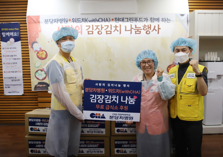 분당 차병원 봉사동호회 위드차(withCHA) 회원들과 임직원들은 23일 기부금을 후원하거나, 직접 김장담기에 참여해 국내산 재료로 만든 김장김치 300포기를 준비했다. 김치는 성남시 자원봉사센터를 통해 저소득가정, 홀몸 어르신들이 이용하는 무료급식소로 전달될 예정이다.