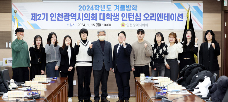인천시의회는 15일부터 다음 달 23일까지 6주간 지역 대학생 10명을 대상으로 ‘2024년 겨울방학 제2기 대학생 인턴십’을 진행한다.