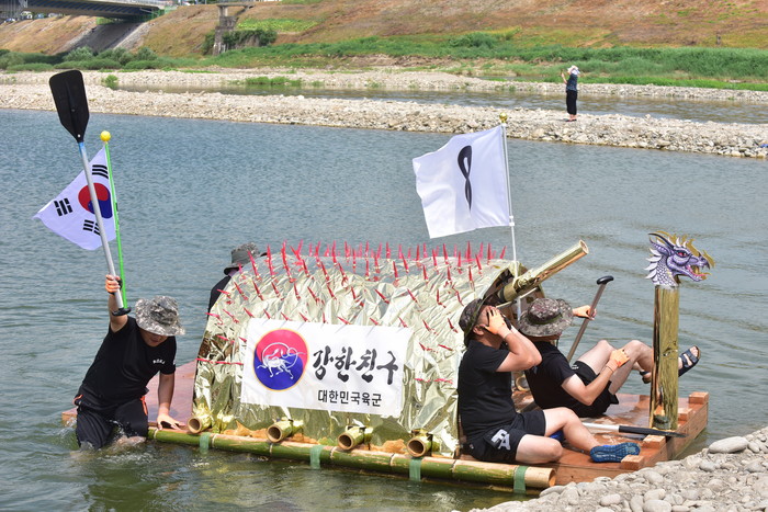참가자들의 기발하고 재미있는 아이디어가 담긴 뗏목들이 동강에 띄워지자 관광객들이 이목을 집중하며 박수로 환호했다.