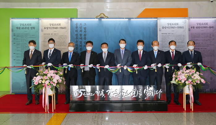 또한 이날 강원도의회 본관 1층에서는 곽도영 강원도의회 의장 등 10여명이 참석한 가운데 ‘강원도의회 개원 65주년 기념 테이프 커팅식’이 열렸다.
