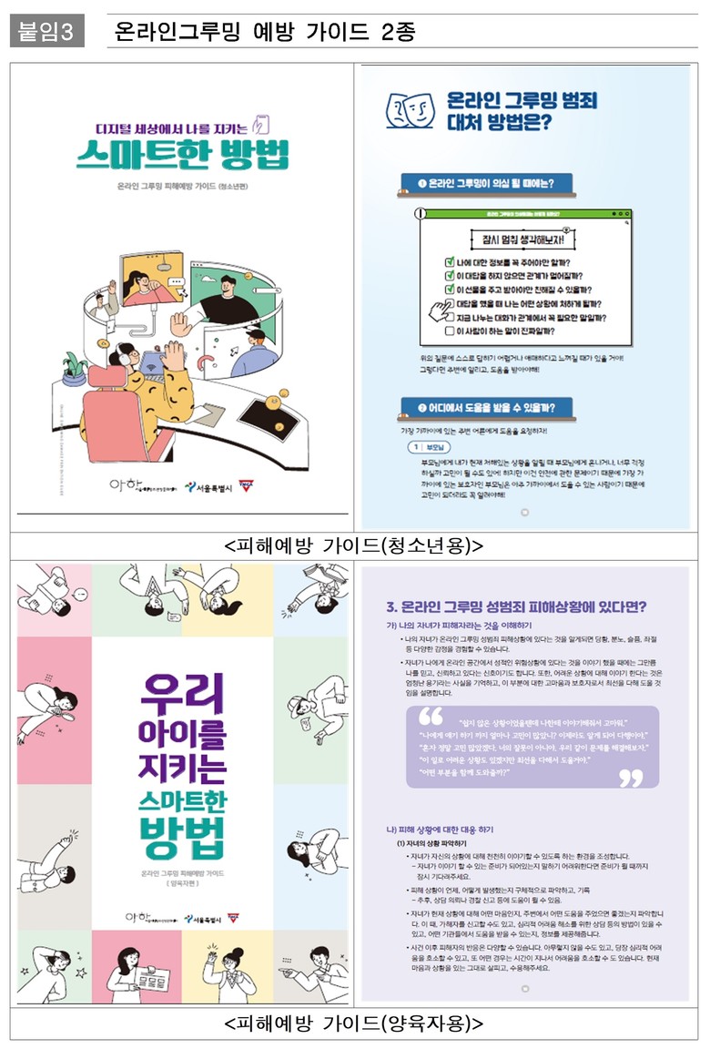 - 12.2.(화) ‘서울시 온라인 그루밍 실태 및 대응방안 토론회’ 개최…예방 가이드 배포