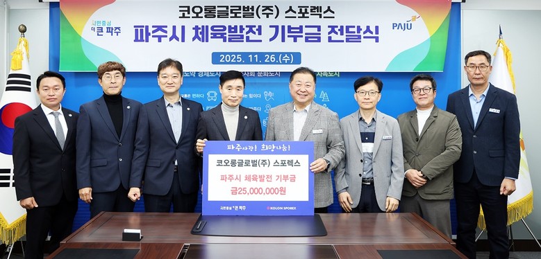 [파주시 세계타임즈=송민수 기자] 파주시는 코오롱글로벌㈜이 지난 26일 파주시 체육 발전을 위한 기부금 2천5백만 원을 전달했다고 밝혔다.