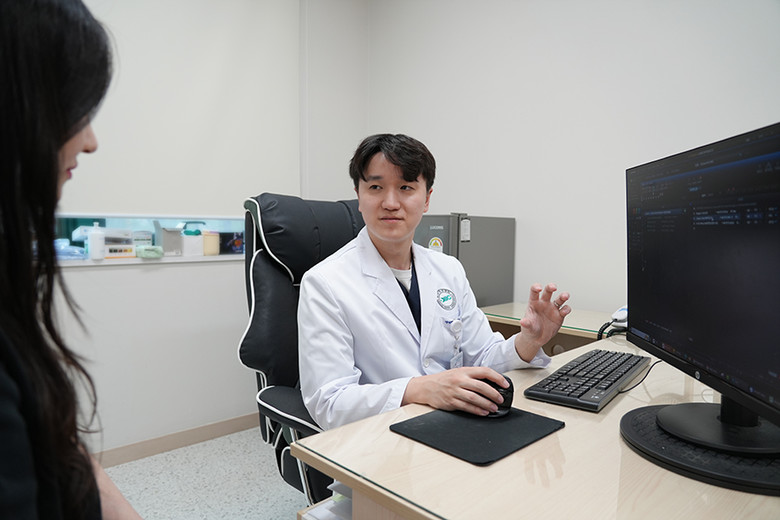 | ▲분당제생병원 소화기내과 서준영 과장이 환자에게 설명하고 있다(사진=분당제생병원) |