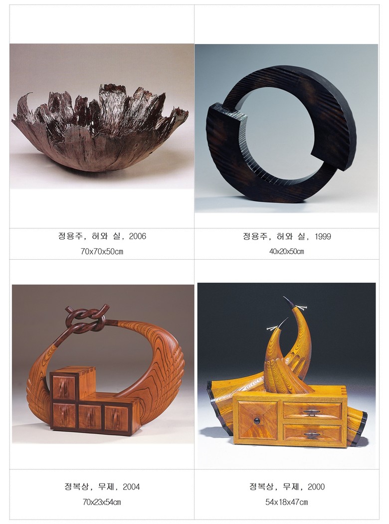 정영환, 정용주, 정복상은 한국 현대 목칠 분야를 대표하는 삼총사로 국내외에서 활발한 작품활동을 펼치며 한국 현대 목칠공예의 발전 과정에 기여했다. 이들은 1970년대 목공예로 공예계에 입문해 점차 옻칠조형 작업으로 확장하는 동시에 대구 지역 대학에서 후학양성에 힘쓰고, 한국 현대 목칠공예의 우수성을 독일·일본·중국 등 외국에 알려 국제적 위상을 드높였다.