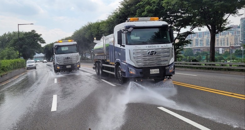 | ▲ 도로 물청소 운영 모습 |