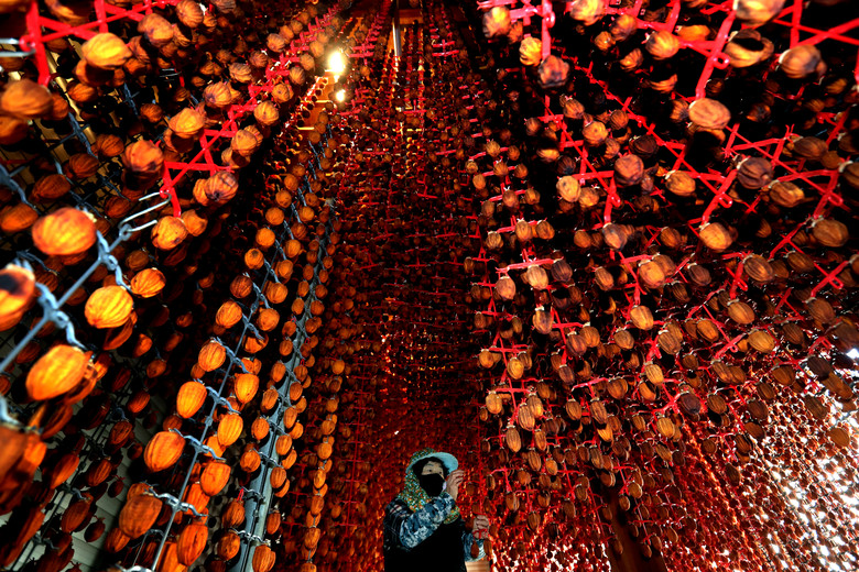 [충북 세계타임즈=이현진 기자] 말린 곶감 출하가 본격 시작된 8일 충북 영동군 한 농장 관계자가 곶감을 손질하며 분주한 모습을 보이고 있다./충북도의회 제공