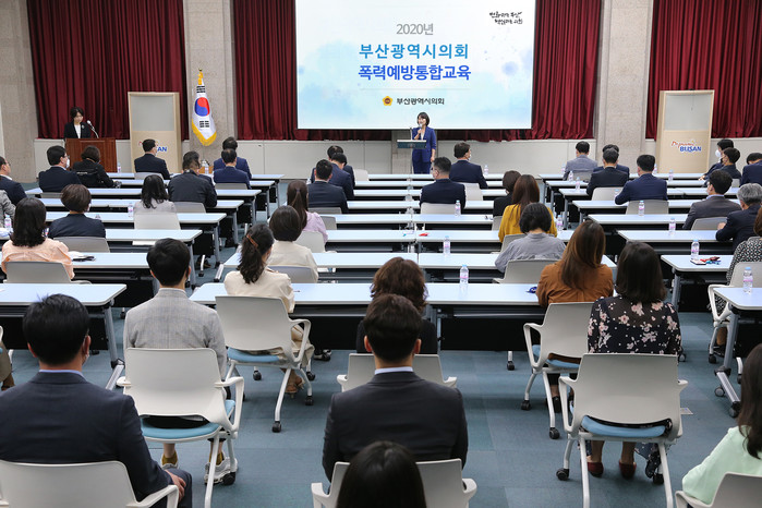 [부산=세계타임즈 장경환 기자] 부산광역시의회(의장 박인영)는 지난 12일과 오는 15일 양일간, 시청 1층 대회의실에서 전 의원 및 의회 사무처 직원을 대상으로‘2020년 부산광역시의회 폭력예방통합교육’을 실시하고 있다.
