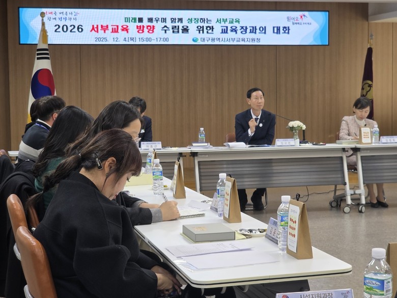 [대구 세계타임즈=한윤석 기자] 대구서부교육지원청(교육장 김규은)은 12월 4일(목) 청사 대회의실에서 학생, 학부모, 교원 대표 12명을 초청해 ‘2026 서부교육의 방향 수립을 위한 교육장과의 대화’를 개최했다.