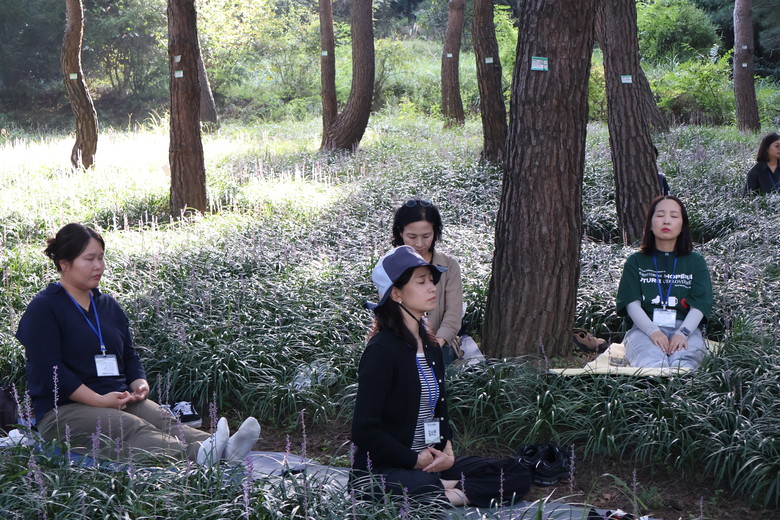 특히 맥문동이 가득 핀 숲에서는 라벤더 오일을 활용한 셀프 마사지와 싱잉볼 명상 체험을 하며 바쁜 일상을 잠시 내려놓고 숲의 소리와 향기를 온전히 느끼며 심신의 안정을 되찾는 시간을 경험했다.