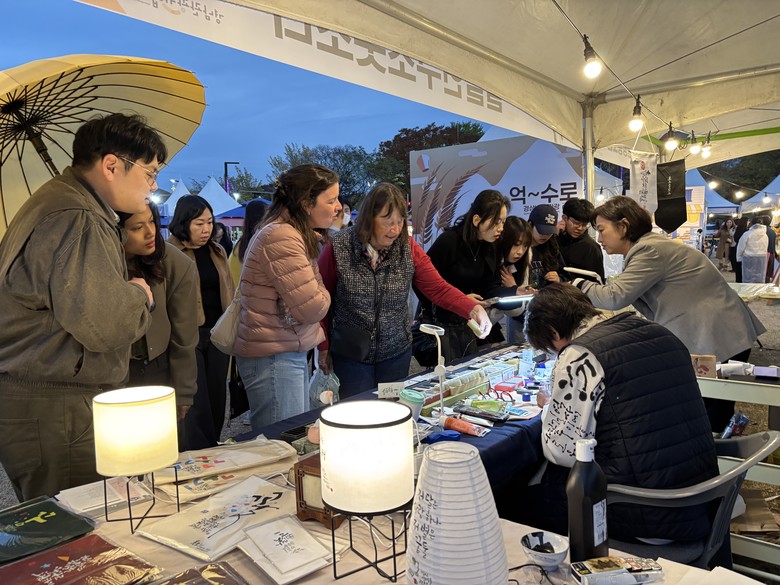 ‘글꼴붓소리연구소’는 현장에서 직접 제작한 수제도장과 한글 감성 디자인이 담긴 캘리그래피 소품·문구류를 판매했으며, ‘메리얼제이’는 한글의 아름다움과 사천의 감성이 담긴 원단을 제작해 지역 고유의 색채를 표현한 패브릭 제품을 선보였다.