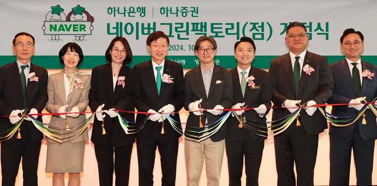이 날 개점식 행사에는 박애너스 네이버 책임리더, 노세관 네이버 I&S 대표이사를 비롯해 이승열 하나은행장, 전우홍 하나은행 중앙영업그룹 부행장, 이병철 하나증권 WM그룹장 등이 참석해 하나금융그룹과 네이버 간 파트너십의 일환으로 신설된 ‘네이버그린팩토리점’ 개점을 축하했다.