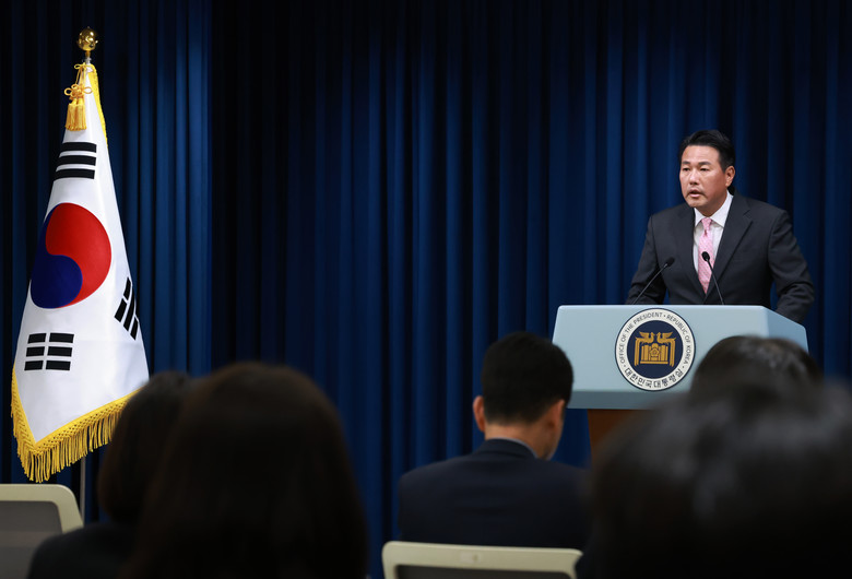 김태효 국가안보실 1차장이 12일 서울 용산 대통령실 청사에서 윤석열 대통령의 아시아태평양경제협력체(APEC), 주요 20개국(G20) 정상회의 참석 브리핑을 하고 있다. 2024.11.12