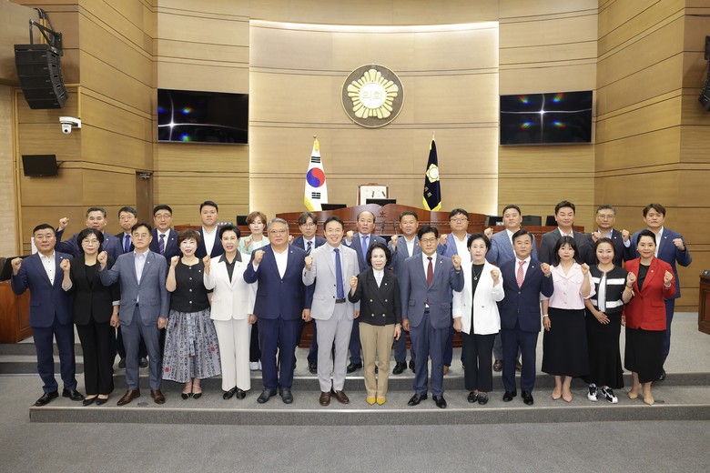 ▲경제산업위원회 위원장 강성기(국민의힘·가선거구), 부위원장 정선희(더불어민주당·차선거구), 복아영(더불어민주당·다선거구), 김철환(국민의힘·마선거구), 이지원(국민의힘·바선거구), 배성민(더불어민주당·사선거구), 김길자(더불어민주당·카선거구)