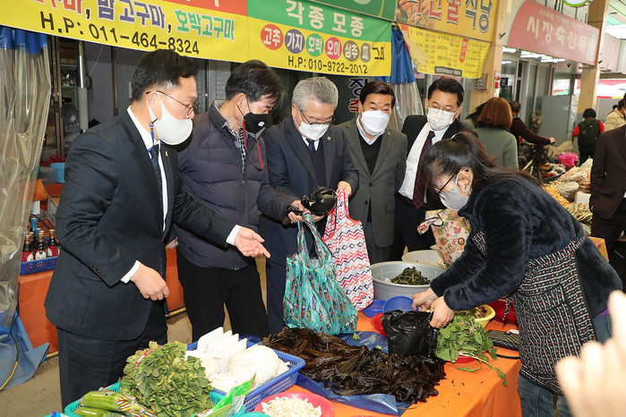 참여자들은 부럼, 묵은나물 등 농축산물을 구입하고 시장상인들의 애로사항을 청취했다.
