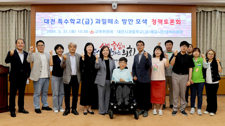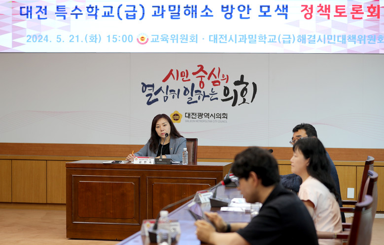 [대전 세계타임즈=이채봉 기자] 대전시의회는 김민숙(더불어민주당, 비례대표) 의원 주재로 21일 시의회 소통실에서 ‘대전 특수학교(급) 과밀해소 방안 모색 정책토론회’를 개최했다.