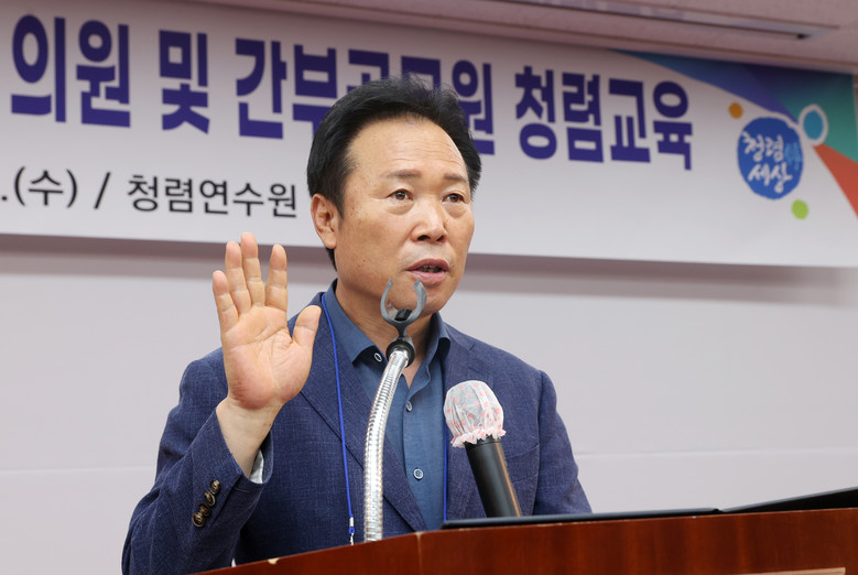 교육에 참석한 황 의장은 “도의원을 비롯한 사무처 전 직원이 항상 가슴에 새겨야 할 첫 번째 덕목이 청렴”이라며, “164만 도민에게 신뢰받는 의회가 되기 위해서는 청렴의정을 위한 실천이 중요하고 앞으로 솔선수범하겠다.” 라고 말했다.