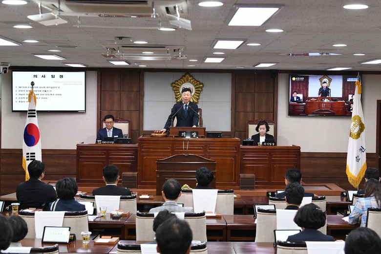 정병회 의장은 개회사를 통해 집행부에 “4.10 총선에서 선의의 경쟁을 통해 당선되신 분께는 축하의 박수를, 낙선하신 분께는 위로의 말씀을 드린다”고 전하며, “이제는 순천의 위대한 발전과 시민의 행복을 위해 나아가야 할 때”라고 말했다.